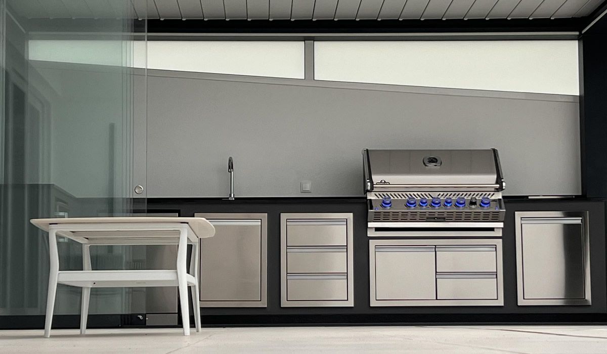 Somos especialistas na conceção e execução de cozinhas de exterior por medida, onde cada detalhe é pensado para oferecer desempenho, durabilidade e uma experiência de utilização superior. Integramos grelhadores, módulos de arrumação, fornos de pizza, queimadores laterais, frigoríficos de exterior e todos os equipamentos necessários para transformar o seu espaço num verdadeiro centro de convívio.
